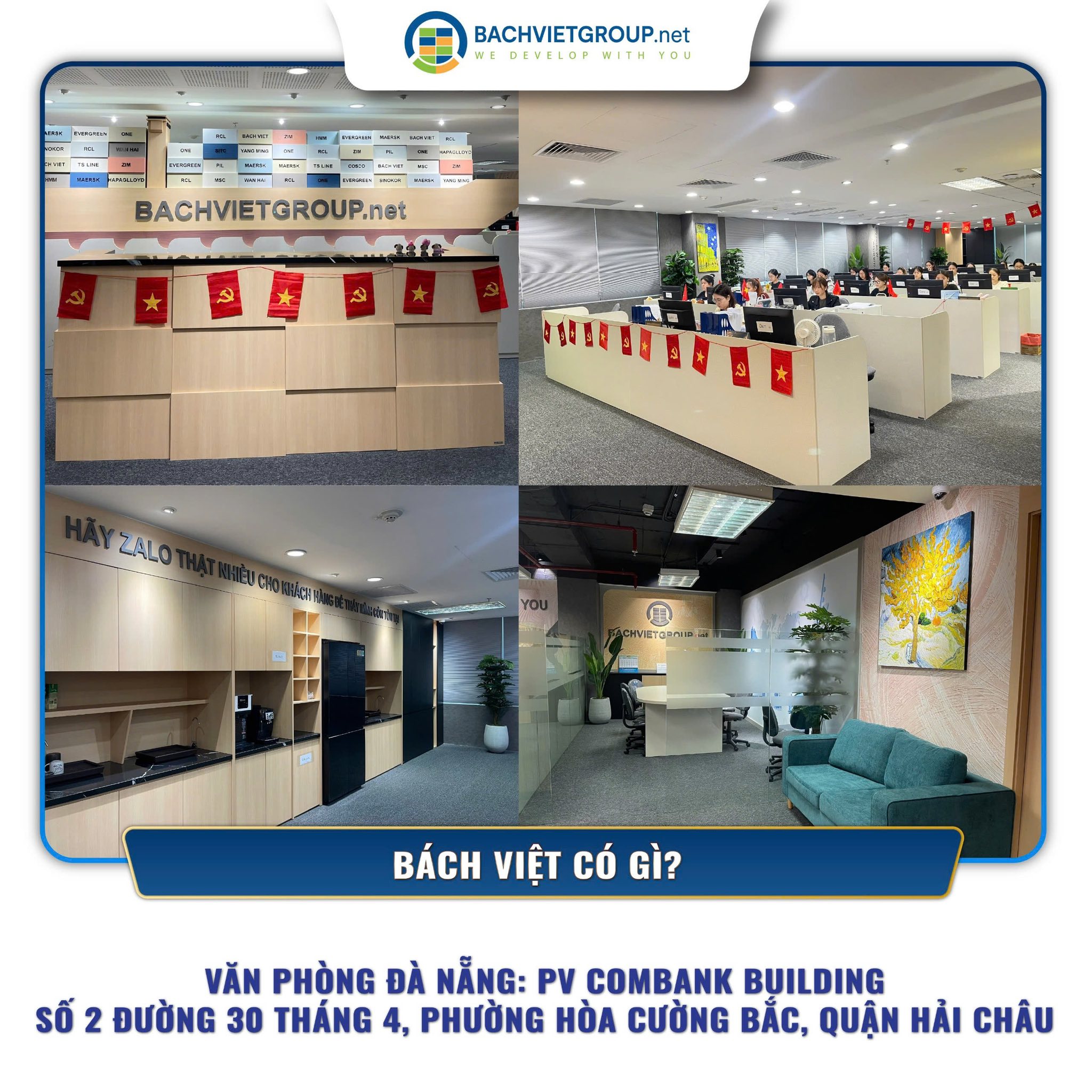 Sau gần 20 năm phát triển, BACHVIETGROUP.net đã mở rộng hệ thống chi nhánh trong và ngoài nước, đồng thời gia nhập WCA, Jctrans, IATA, FMC. Điều này đã giúp chúng tôi tạo dựng được mối quan hệ chiến lược lâu dài với hệ thống đại lý tại 200 quốc gia trên toàn thế giới, chuyên cung cấp dịch vụ vận tải hàng hóa từ kho đến kho, từ hàng lẻ đến container, với khối lượng hàng từ nhỏ đến lớn và đa dạng phương thức vận chuyển như đường biển, đường bộ và đường hàng không.